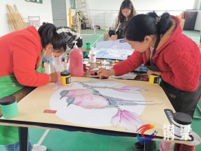 我还走进了乡村振兴车间带动就业。小林镇成立的“春生工作室”,川美毕业的“外来媳妇”许梦玫当上了非遗传承人,过去只会带娃的张星利学会了上漆和装裱,拿过工厂螺丝刀的罗荣燕拿起了掐丝的钳子。更多的姐妹们在工作室学会了铜丝画这门手艺,多了一份收入。