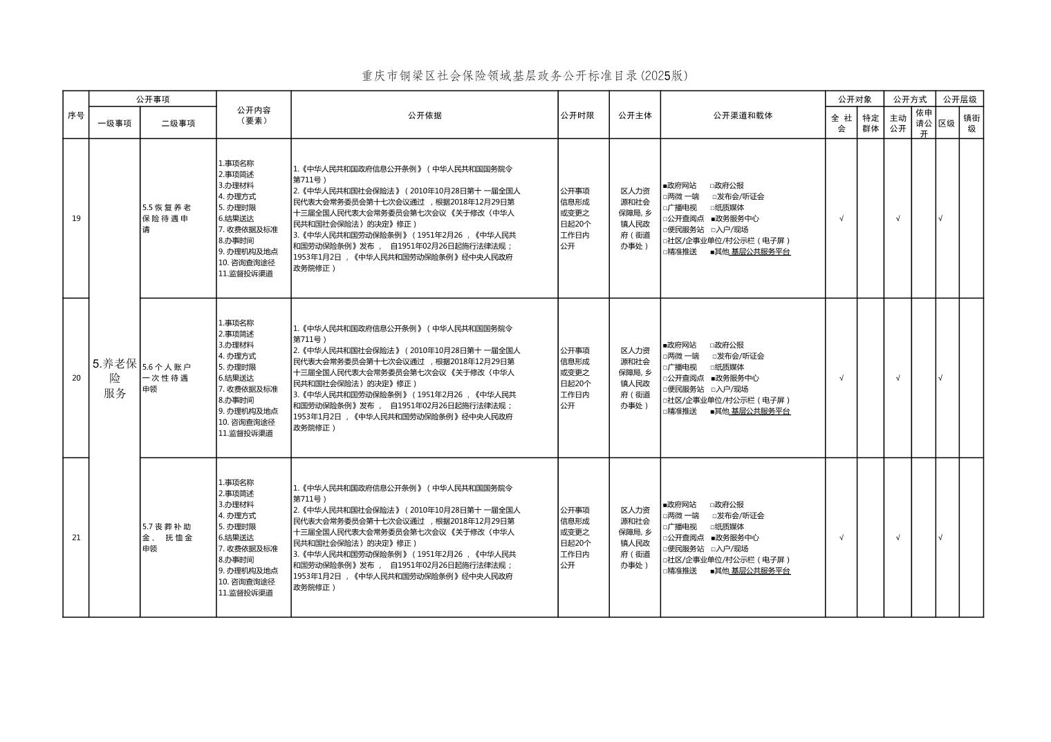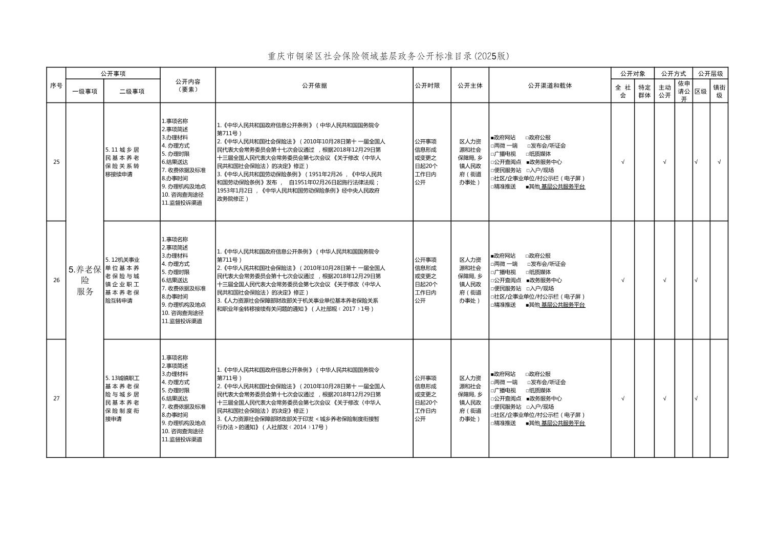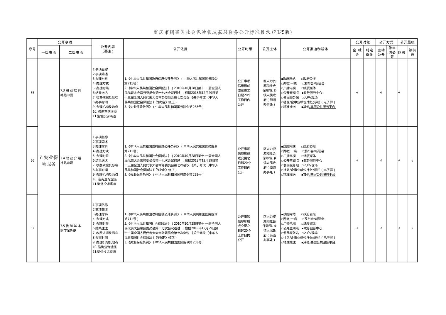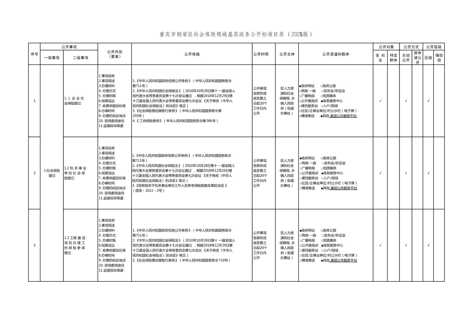 重庆市铜梁区社会保险领域基层政务公开标准目录(2025版)