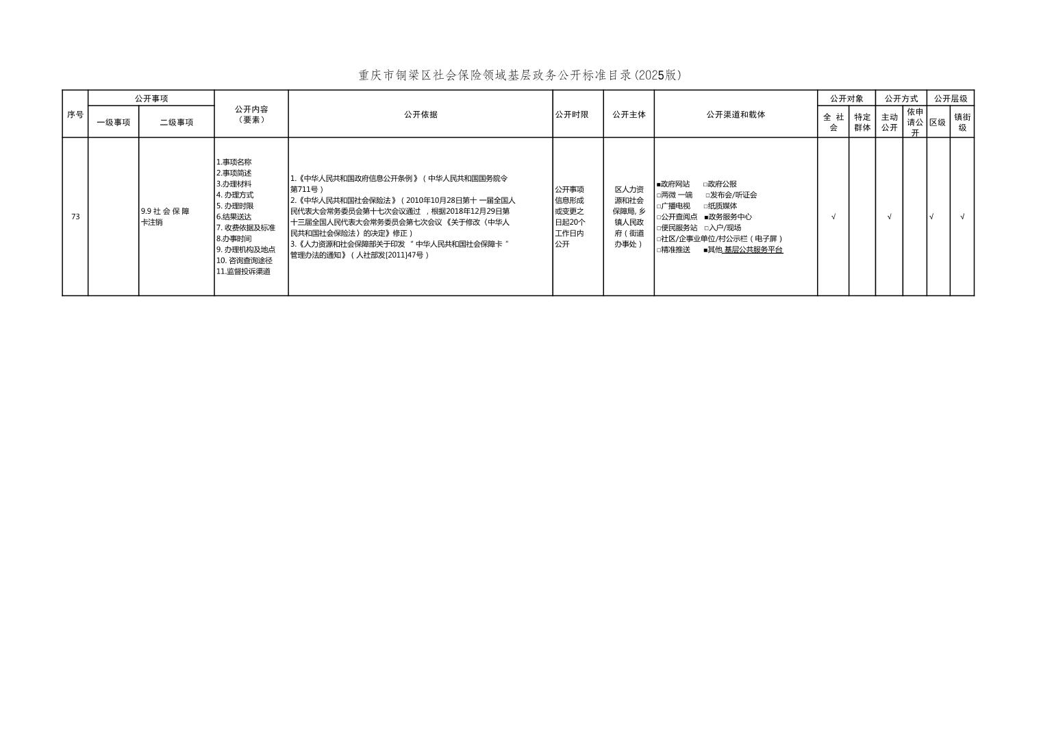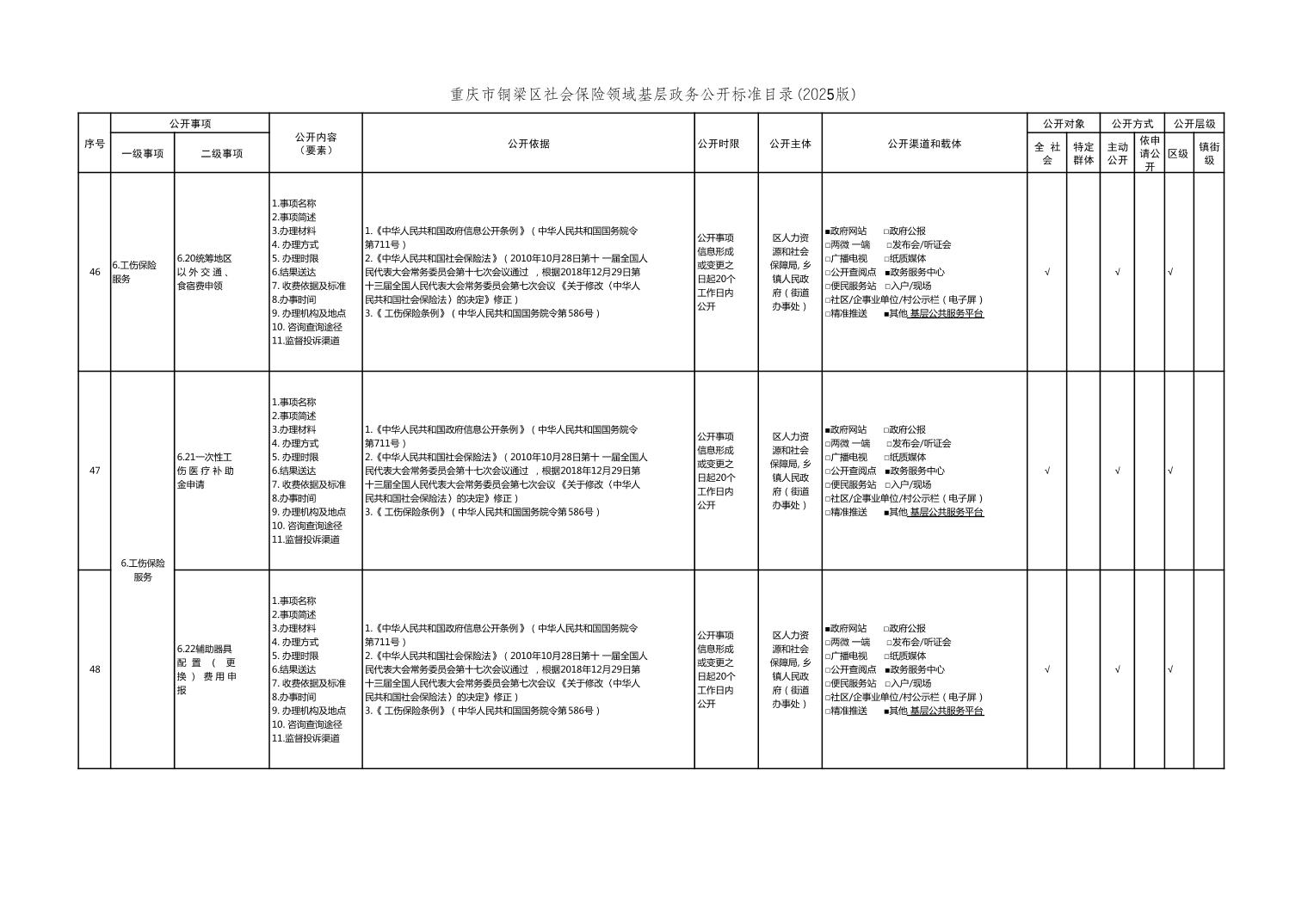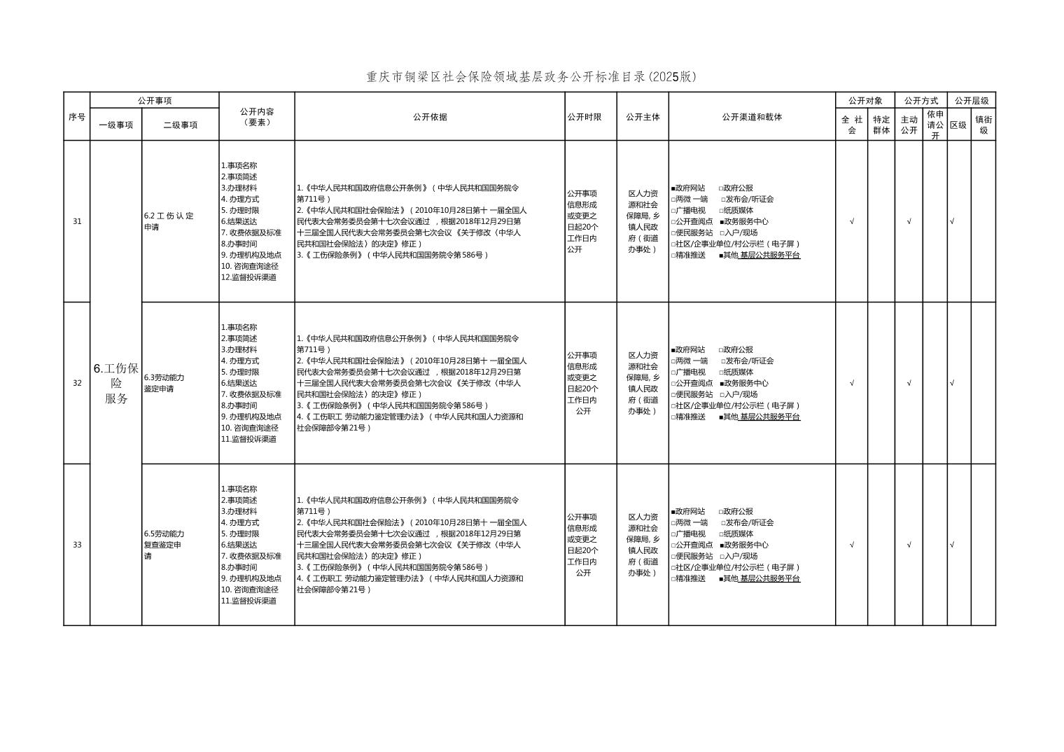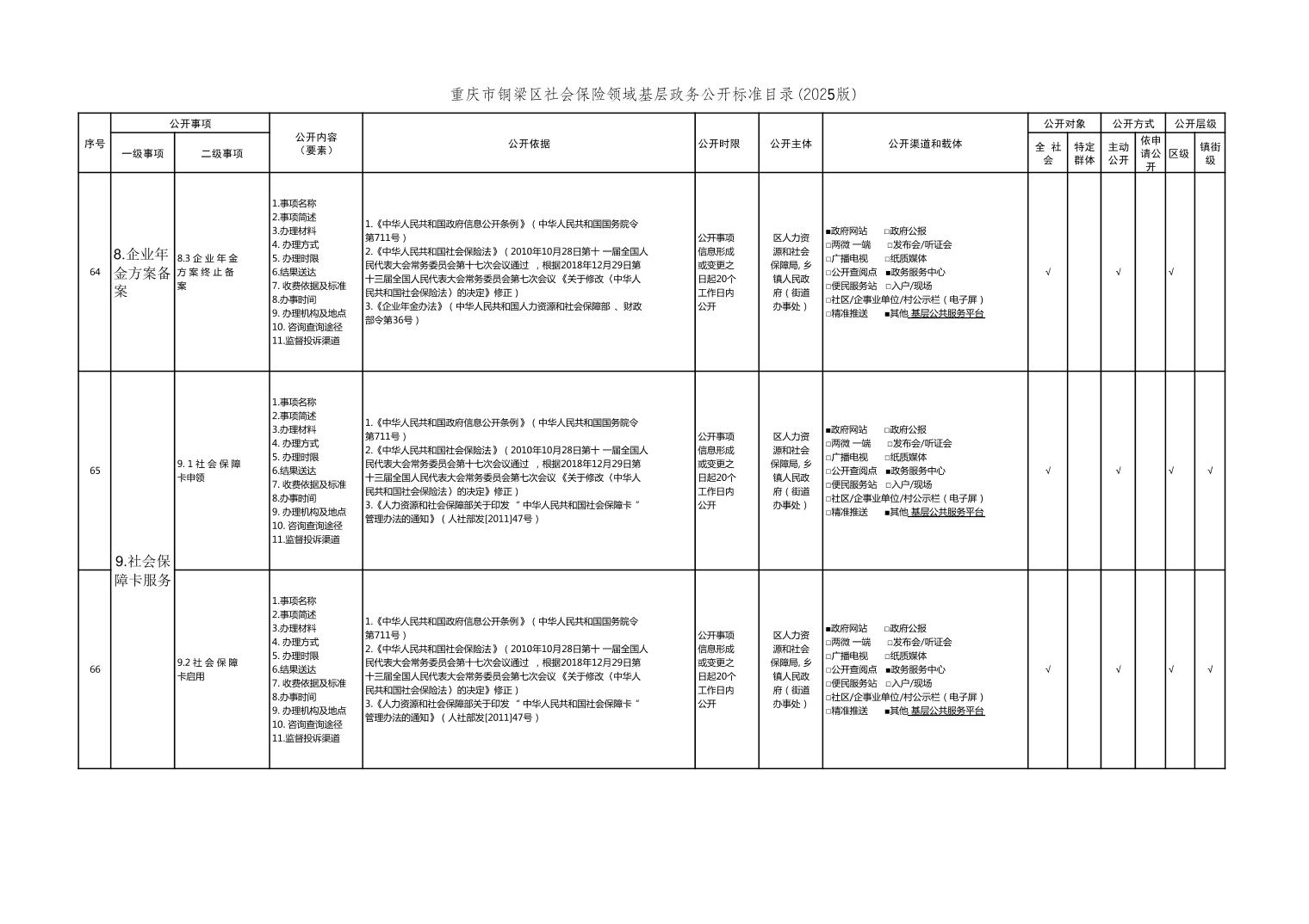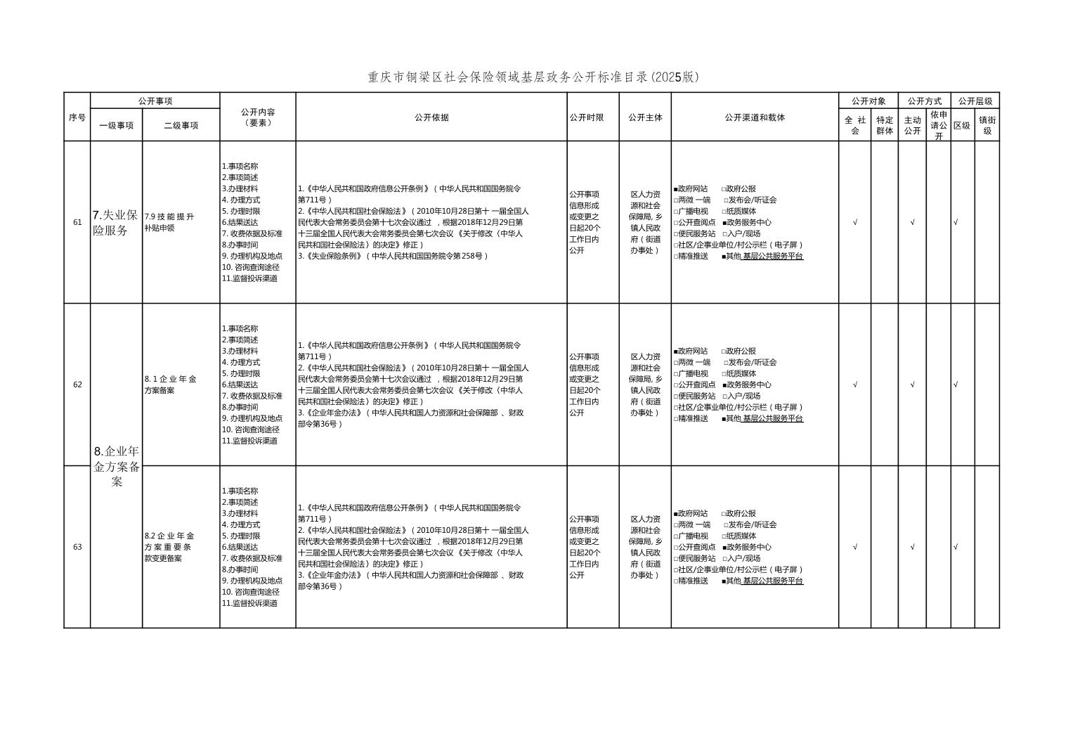 重庆市铜梁区社会保险领域基层政务公开标准目录(2025版)