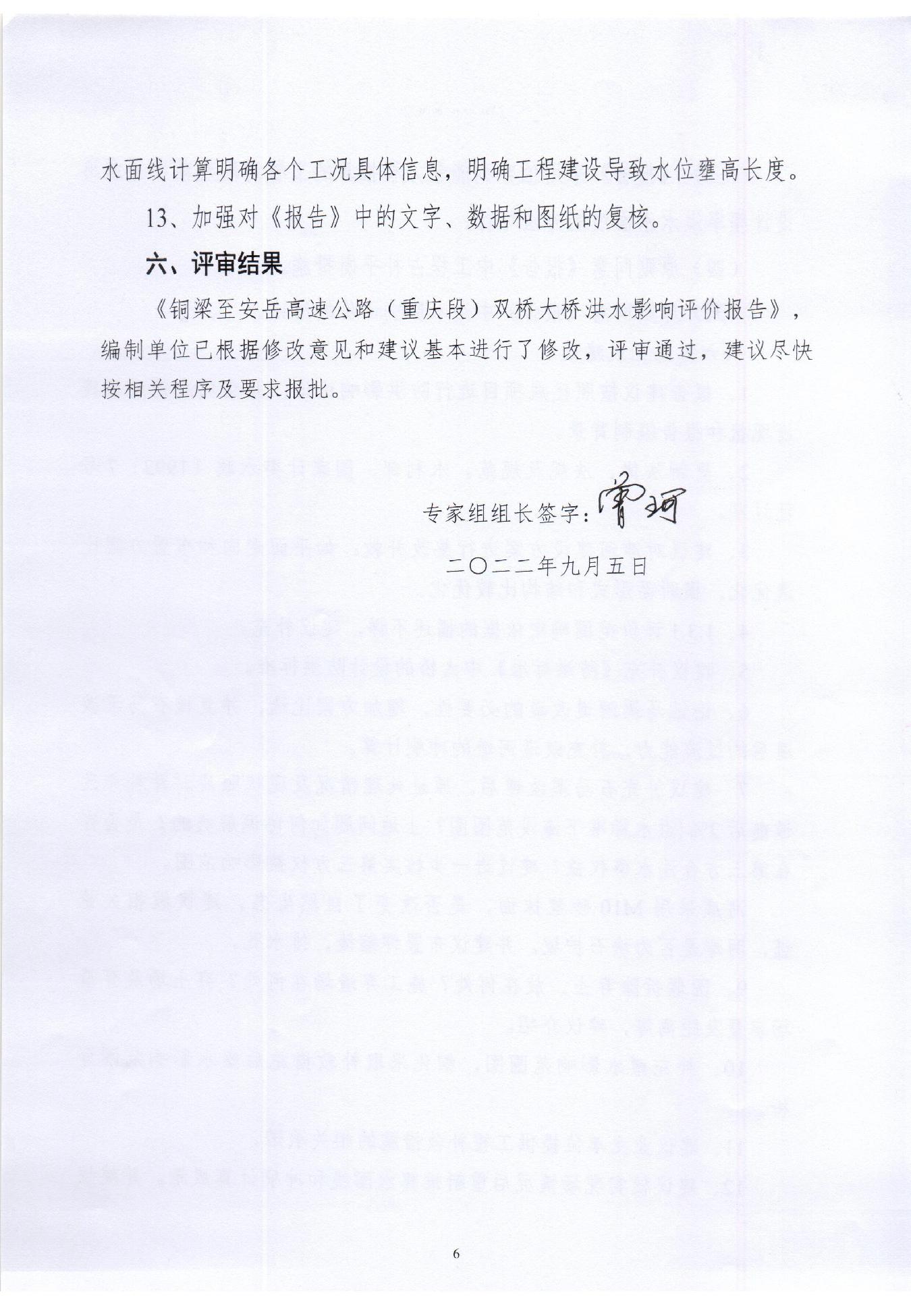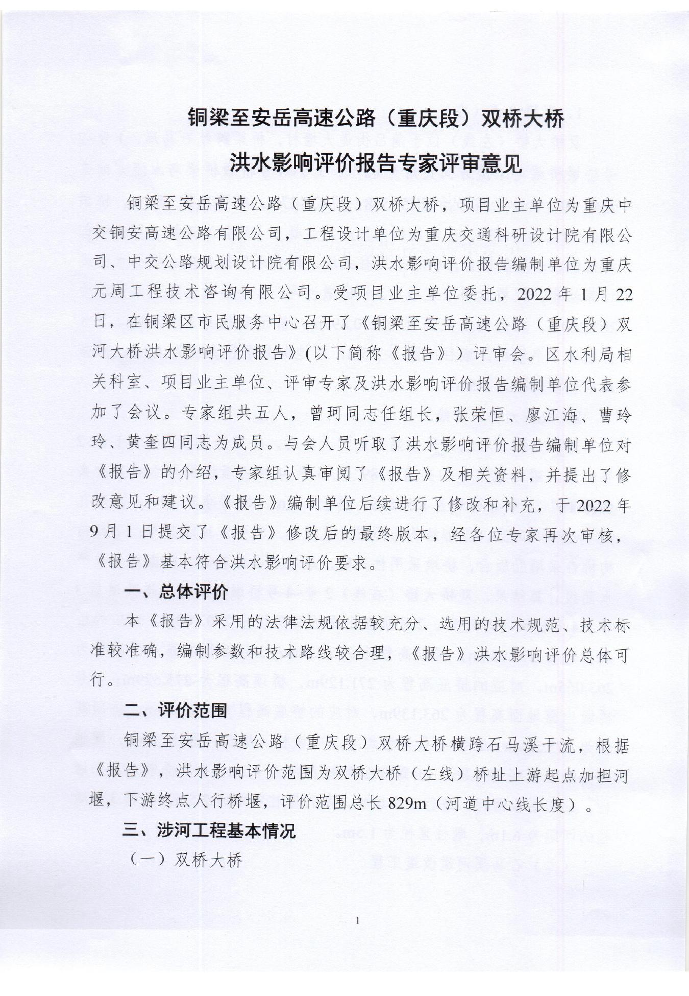 附件:铜梁至安岳高速公路(重庆段)双桥大桥洪水影响评价报告专家评审意见