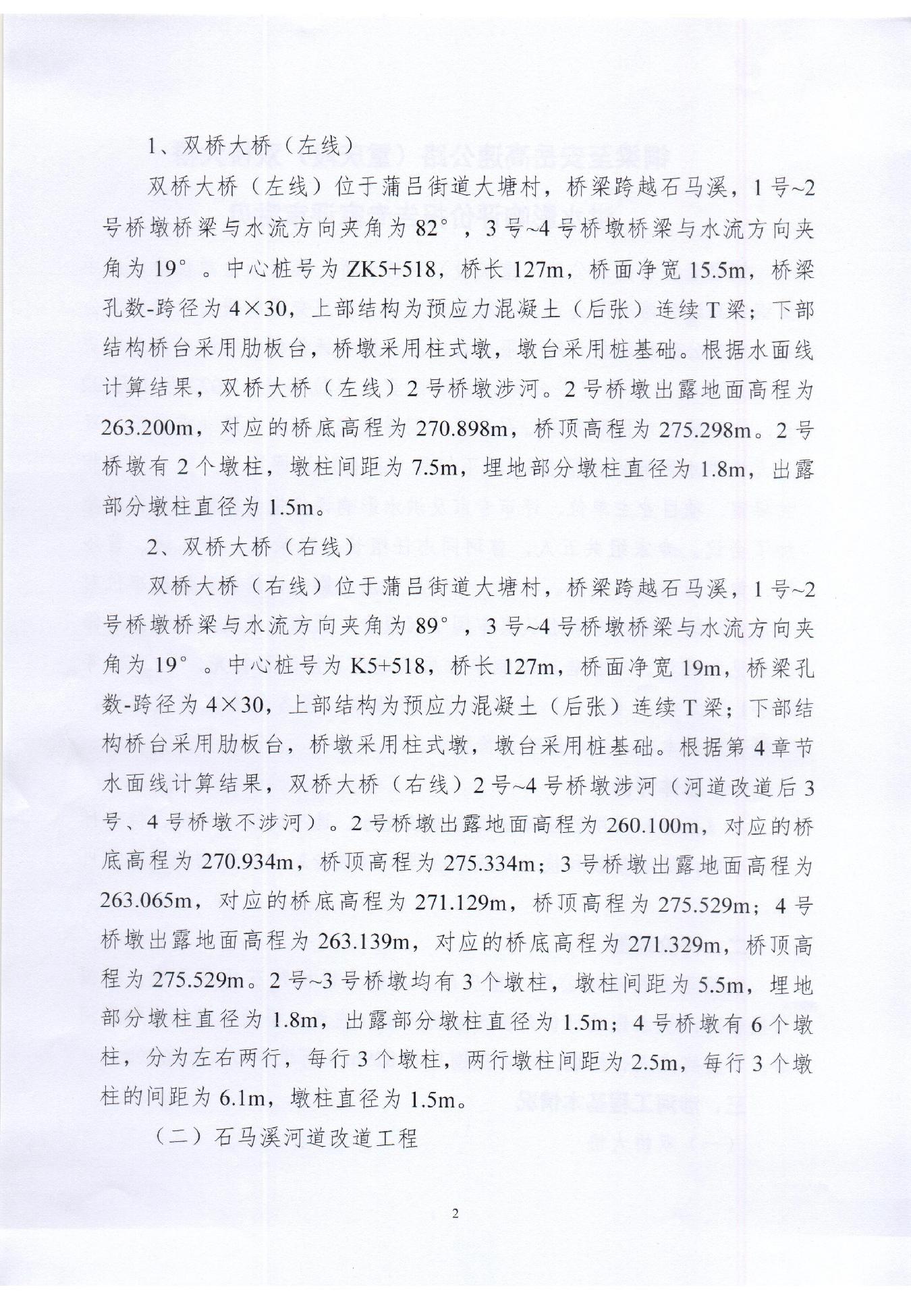 本工程位于重庆市铜梁区蒲吕街道大塘村,涉及河流为石马溪,涉河项目包括双桥大桥、石马溪河道改道工程及工程防治补救措施。