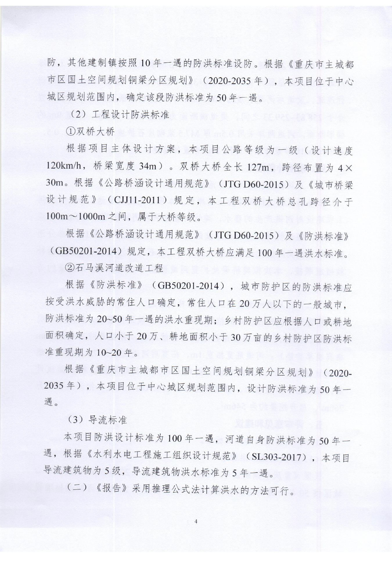 一、同意本工程桥梁设计洪水标准采用100年一遇,工程河段采用50年一遇的防洪标准进行评价。
