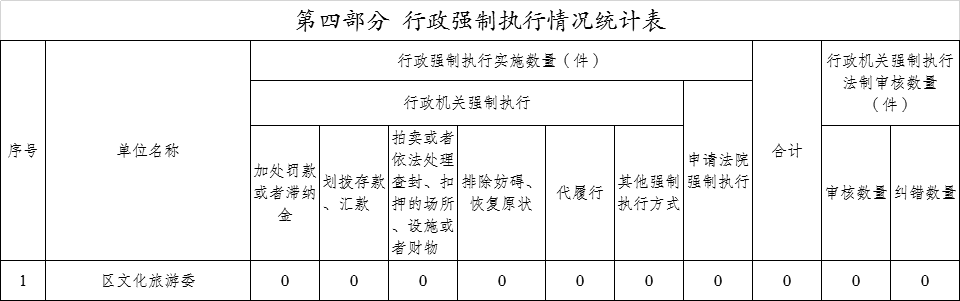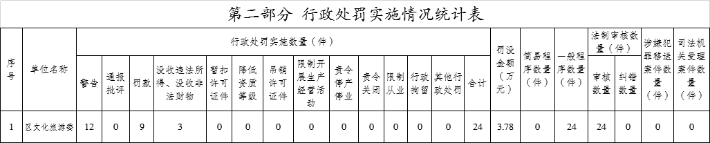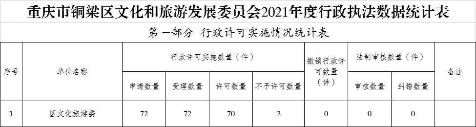 重庆市铜梁区文化和旅游发展委员会2021年度行政执法数据统计表