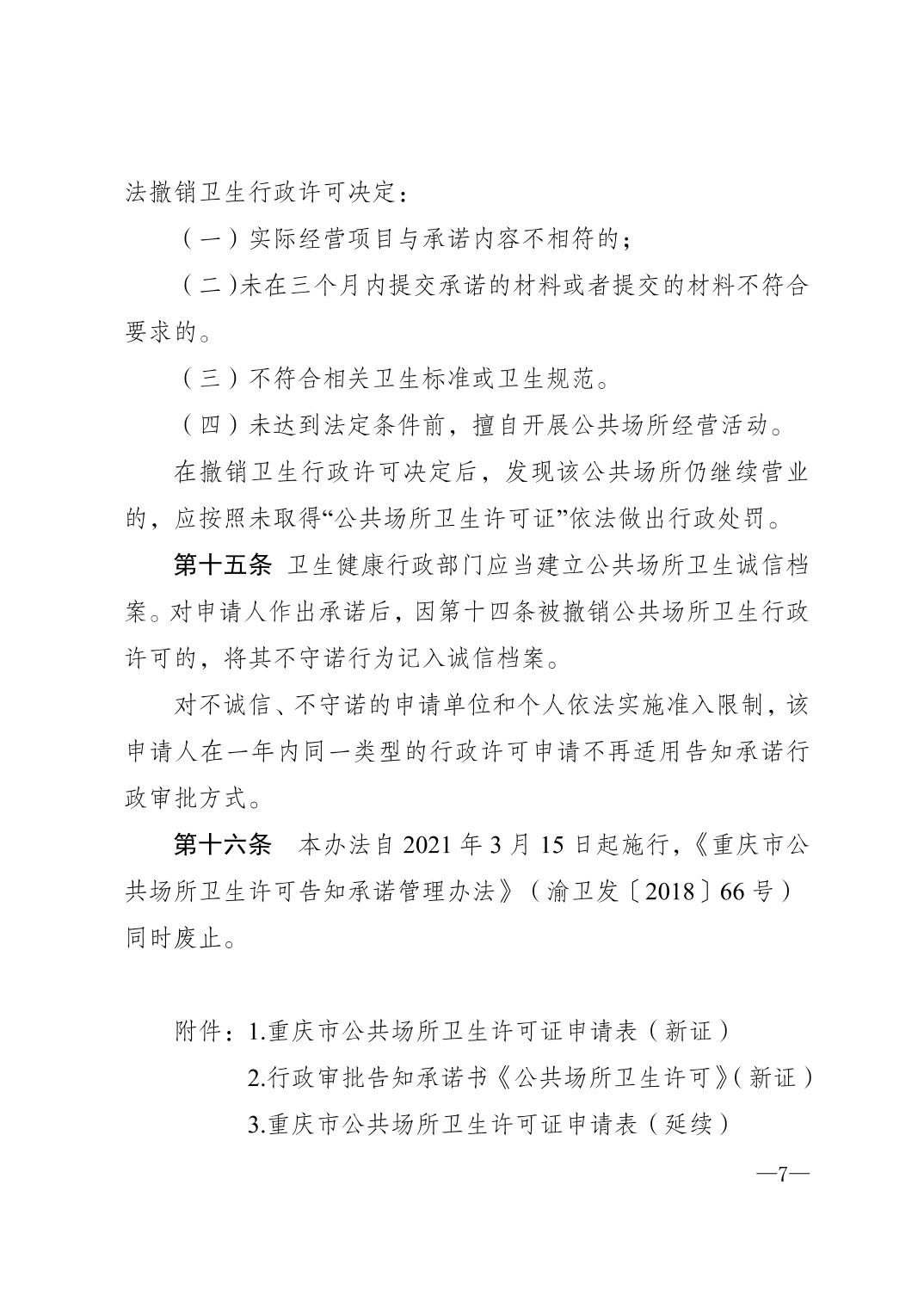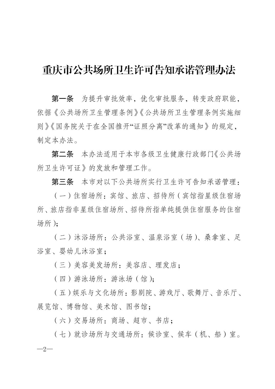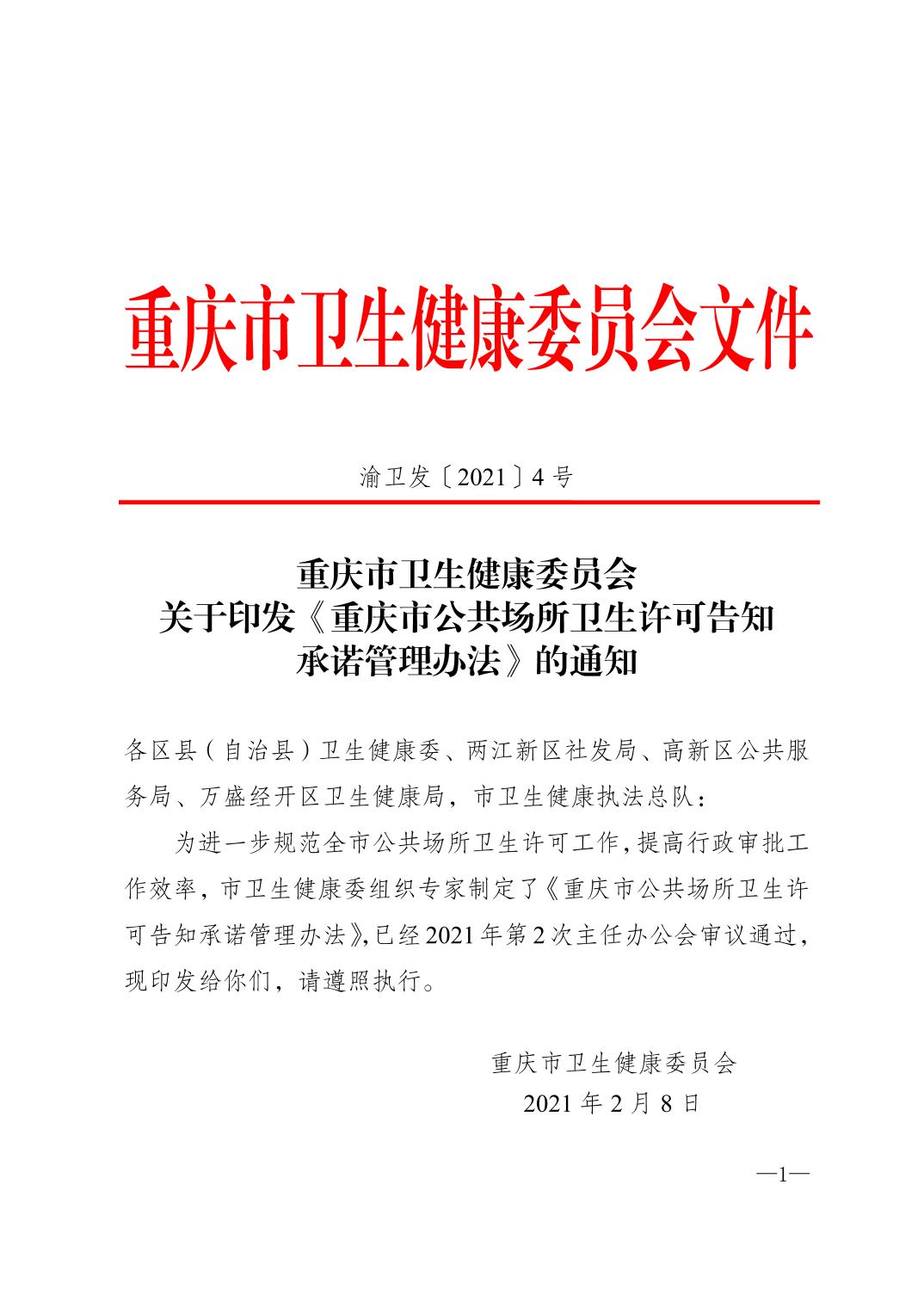 关于印发《重庆市公共场所卫生许可告知承诺管理办法》的通知
