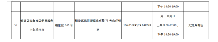 工作领导小组核酸检测组关于公布铜梁区核酸采样点的通告