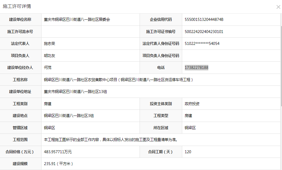 铜梁区巴川街道八一路社区农贸集散中心项目(铜梁区巴川街道八一路社区货运停车场工程)施工许可