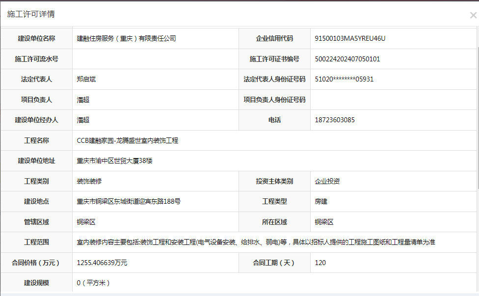 CCB建融家园-龙腾盛世室内装饰工程施工许可