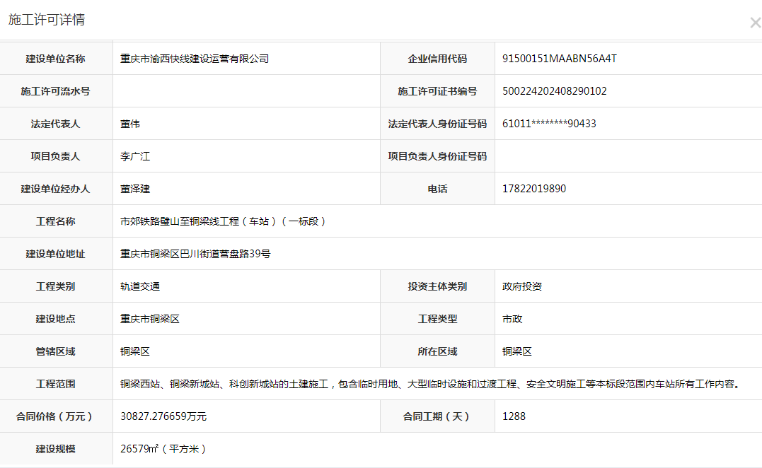 市郊铁路璧山至铜梁线工程(车站)(一标段)施工许可