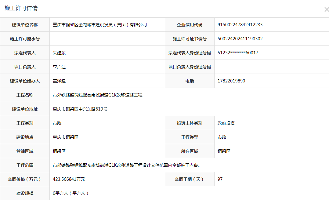 市郊铁路璧铜线配套南城街道G1K改移道路工程施工许可