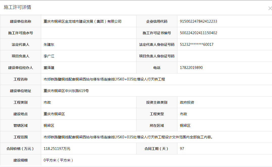 市郊铁路璧铜线配套铜梁西站与停车场连接线LYSK0+035处增设人行天桥工程施工许可