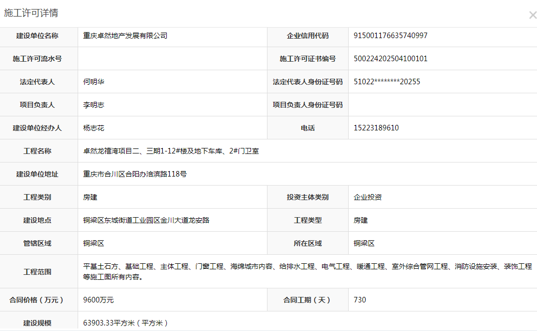 卓然龙禧湾项目二、三期1-12#楼及地下车库、2#门卫室施工许可
