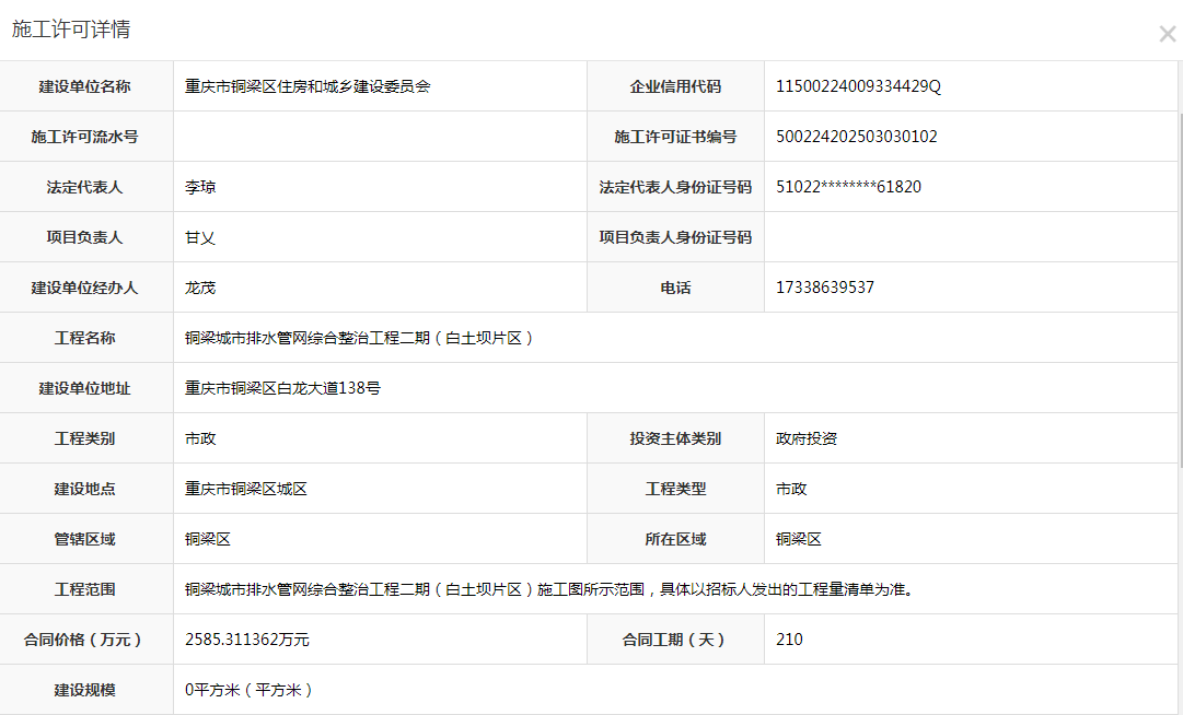 铜梁城市排水管网综合整治工程二期(白土坝片区)施工许可