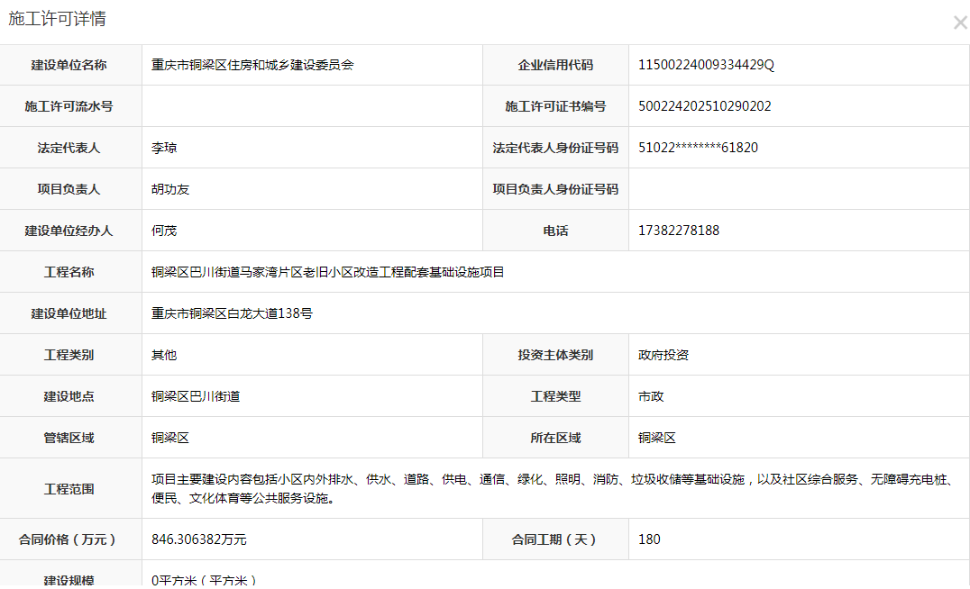 铜梁区巴川街道马家湾片区老旧小区改造工程配套基础设施项目施工许可