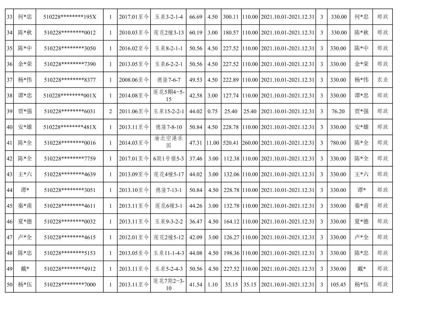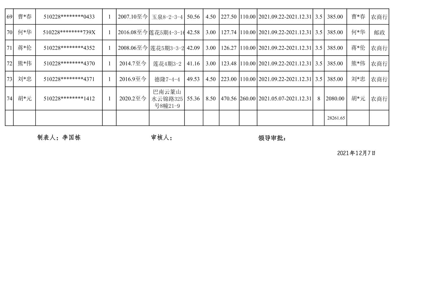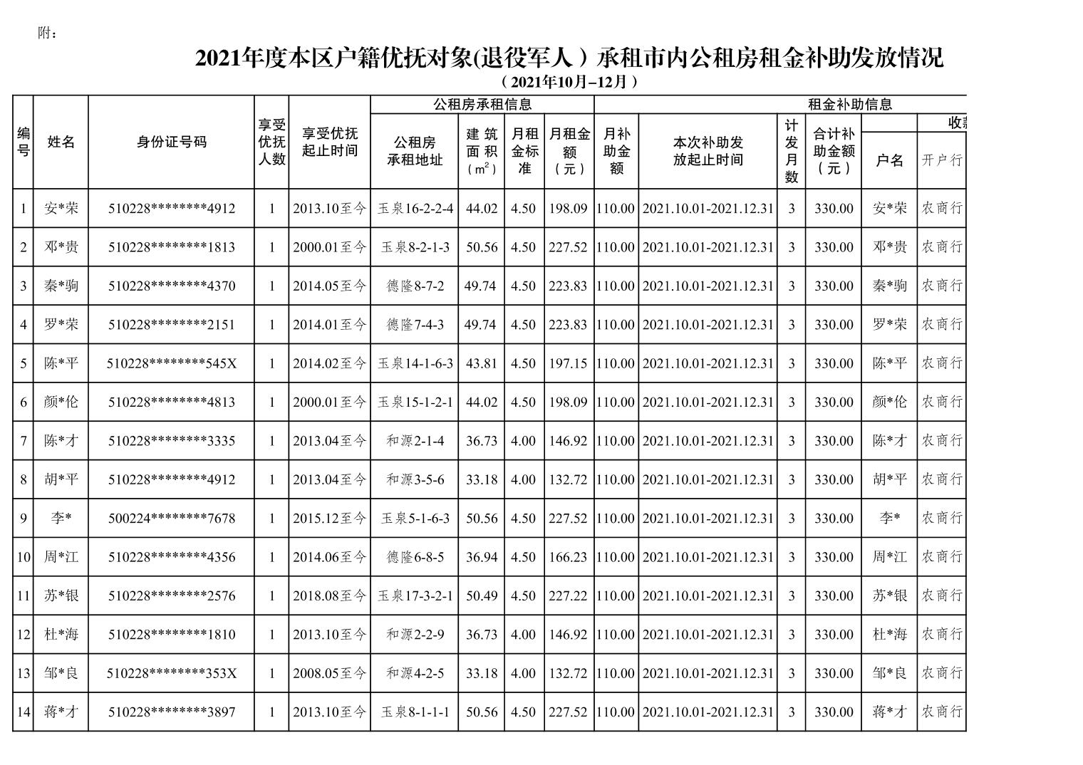 铜梁区2021年第四季度优抚对象租住本市公共租赁住房租金补助发放情况