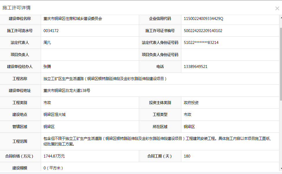 独立工矿区生产生活道路(铜梁区银柿路延伸段及金砂东路延伸段建设项目)施工许可