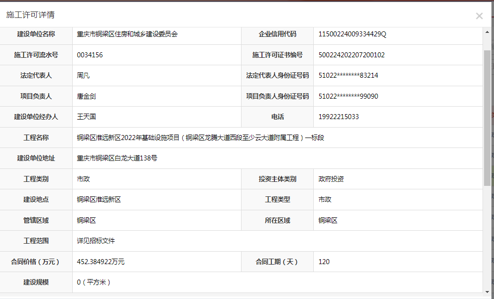 铜梁区淮远新区2022年基础设施项目(铜梁区龙腾大道西段至少云大道附属工程)一标段施工许可
