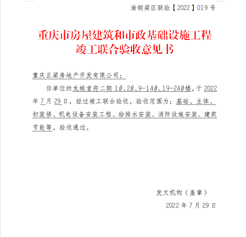 龙城首府二期1#、2#、9-14#、19-24#楼竣工验收