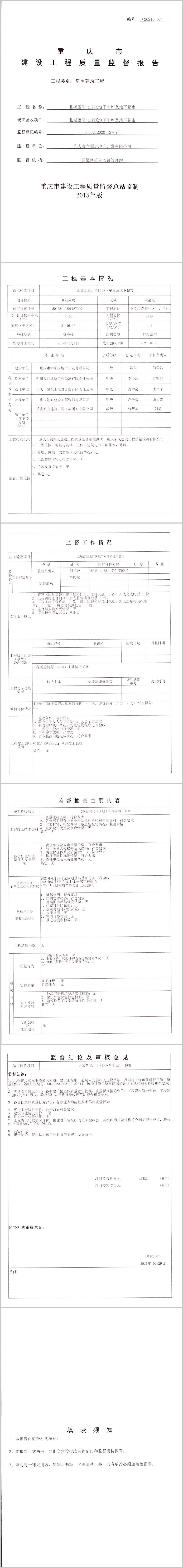 重庆市建设工程质量监督报告(北城蓝湖北片区地下车库及地下超市)