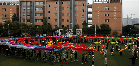 龙灯艺术节龙舞排练现场。