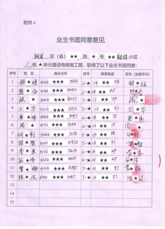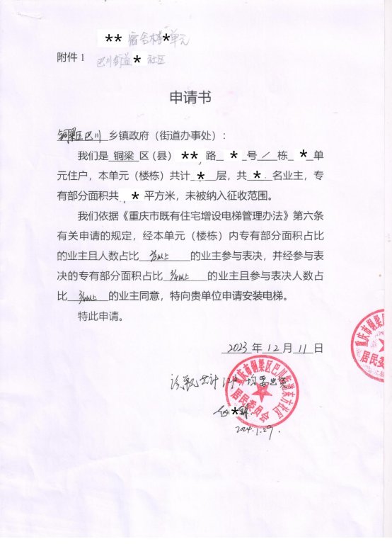 近日,铜梁区巴川街道兴农街*号*单元*等12位业主向重庆市铜梁区巴川街道办事处提出申请,增设电梯。铜梁区巴川街道兴农街*号*单元增设电梯项目的相关情况公示如下:
