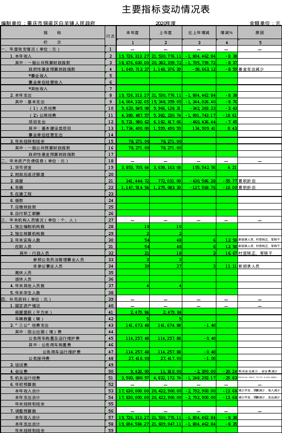 重庆市铜梁区白羊镇2020年度部门决算填报说明