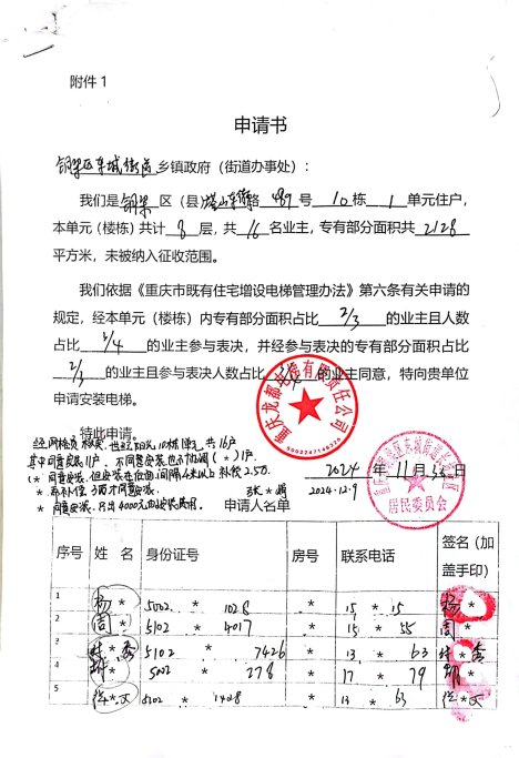 附件:1.书面申请;2.相关合格书;3.示意图;4.业主书面同意意见。5.费用分担协议。