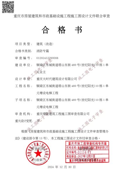 该增设电梯项目名称为铜梁区东城街道塔山东街*号(世纪阳光)*栋*单元增设电梯项目,建设单位为重庆龙都电梯有限责任公司,设计单位为重庆大时代建筑设计有限公司,建设地点位于铜梁区东城街道塔山东街*号(世纪阳光)*栋*单元(方案详见增设电梯示意图),属重庆市铜梁区东城街道长坡社区。