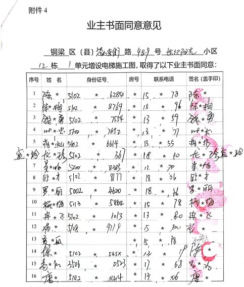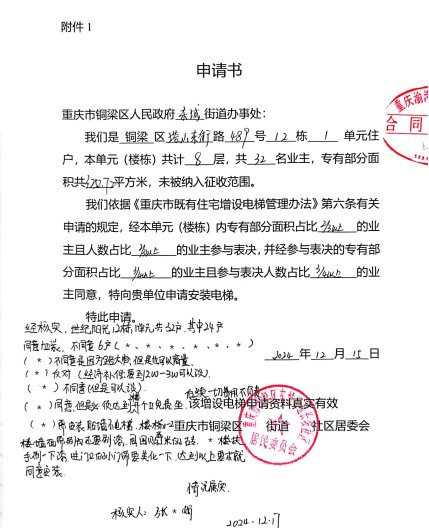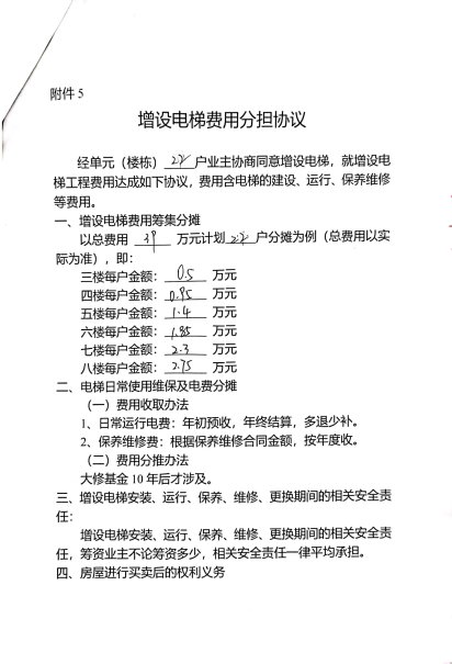 附件:1.书面申请;2.相关合格书;3.增设电梯示意图;4.业主书面同意意见。5.费用分担协议。