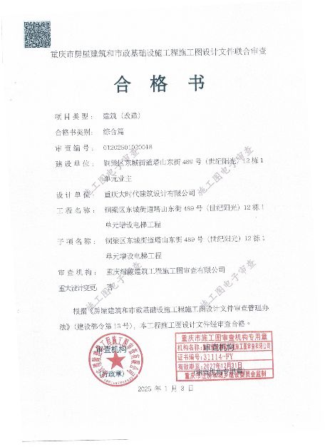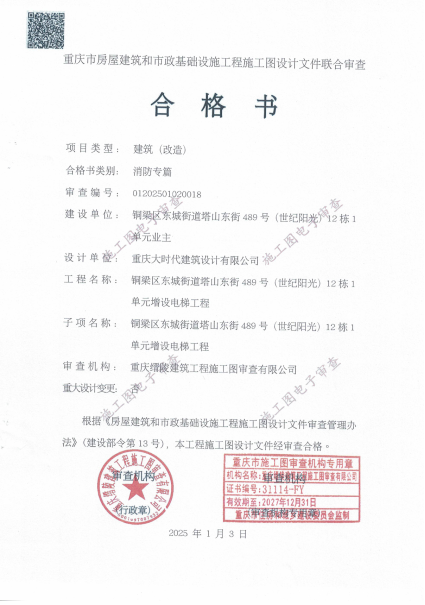 该增设电梯项目名称为铜梁区东城街道塔山东街*号(世纪阳光)*栋*单元增设电梯项目,建设单位为重庆渝港电梯有限公司,设计单位为重庆大时代建筑设计有限公司,建设地点位于铜梁区东城街道塔山东街*号(世纪阳光)*栋*单元(方案详见增设电梯示意图),属重庆市铜梁区东城街道长坡社区。