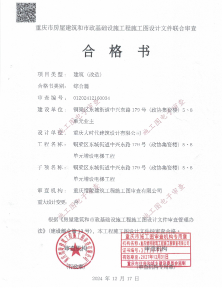 该增设电梯项目名称为铜梁区东城街道中兴东路*号(政协集资楼)*、*单元增设电梯项目,建设单位为重庆渝港电梯有限公司,设计单位为重庆大时代建筑设计有限公司,建设地点位于铜梁区东城街道中兴东路*号(政协集资楼)*、*单元(方案详见增设电梯示意图),属重庆市铜梁区东城街道塔山社区。