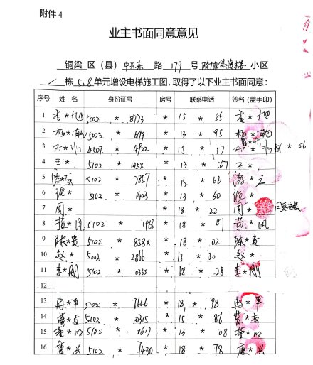 近日,铜梁区东城街道中兴东路*号(政协集资楼)*、*单元共计26户业主,其中杨*乾等18户业主向重庆市铜梁区人民政府东城街道办事处提出申请,增设电梯。现将铜梁区东城街道中兴东路*号(政协集资楼)*、*单元增设电梯项目的相关情况公示如下: