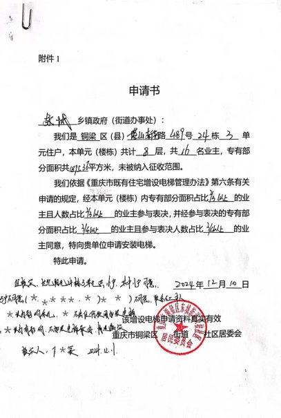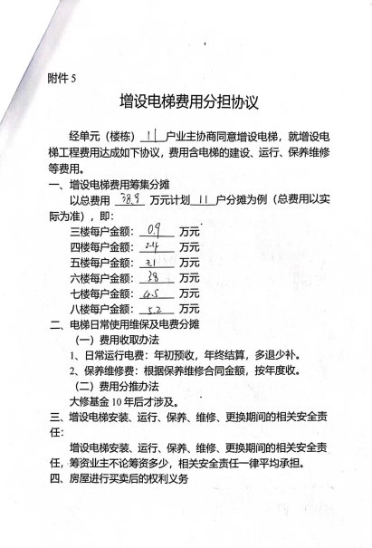 附件:1.书面申请;2.相关合格书;3.增设电梯示意图;4.业主书面同意意见。5.费用分担协议。