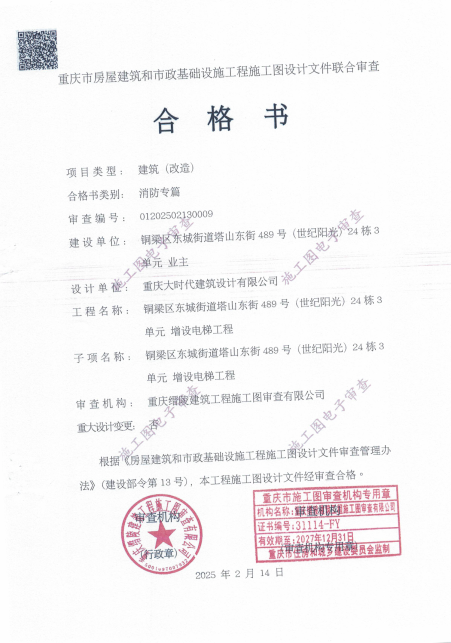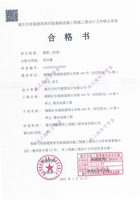 该增设电梯项目名称为铜梁区东城街道塔山东街*号(世纪阳光)*栋*单元增设电梯项目,建设单位为重庆渝港电梯有限公司,设计单位为重庆大时代建筑设计有限公司,建设地点位于铜梁区东城街道塔山东街*号(世纪阳光)*栋*单元(方案详见增设电梯示意图),属重庆市铜梁区东城街道长坡社区。