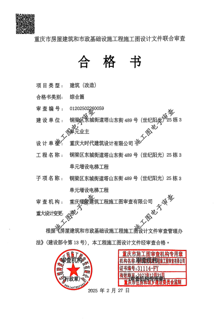 附件:1.书面申请;2.相关合格书;3.增设电梯示意图。