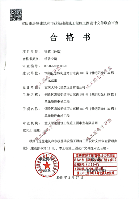 该增设电梯项目名称为铜梁区东城街道塔山东街*号(世纪阳光)*栋*单元增设电梯项目,建设单位为重庆奥华斯电梯工程有限责任公司,设计单位为重庆大时代建筑设计有限公司,建设地点位于铜梁区东城街道塔山东街*号(世纪阳光)*栋*单元(方案详见增设电梯示意图),属重庆市铜梁区东城街道长坡社区。