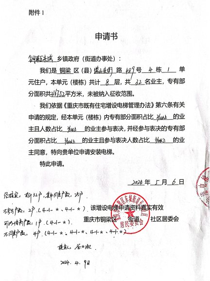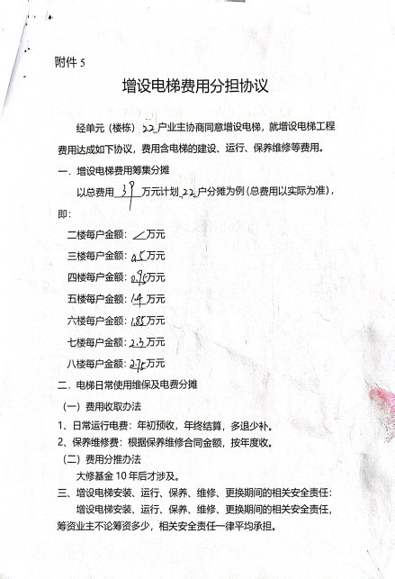 附件:1.书面申请;2.相关合格书;3.增设电梯示意图;4.业主书面同意意见;5.费用分担协议。
