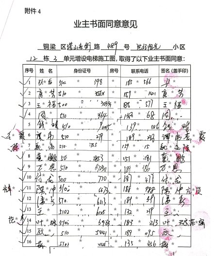 近日,铜梁区东城街道塔山东街*号(世纪阳光)*栋*单元共计32户业主,其中王*福等22户业主向重庆市铜梁区人民政府东城街道办事处提出申请,增设电梯。现将铜梁区东城街道塔山东街*号(世纪阳光)*栋*单元增设电梯项目的相关情况公示如下: