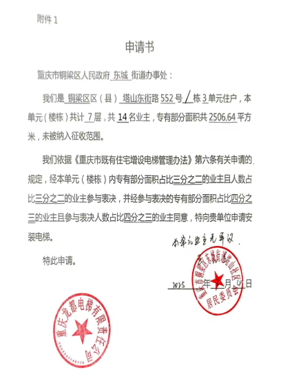 (三)社区居委会和街道办事处出具相关调解情况记录。调解成功的,社区居委会、街道办事处应对申请人递交的增设电梯项目申请资料予以盖章确认。