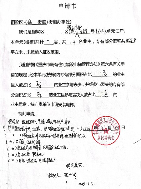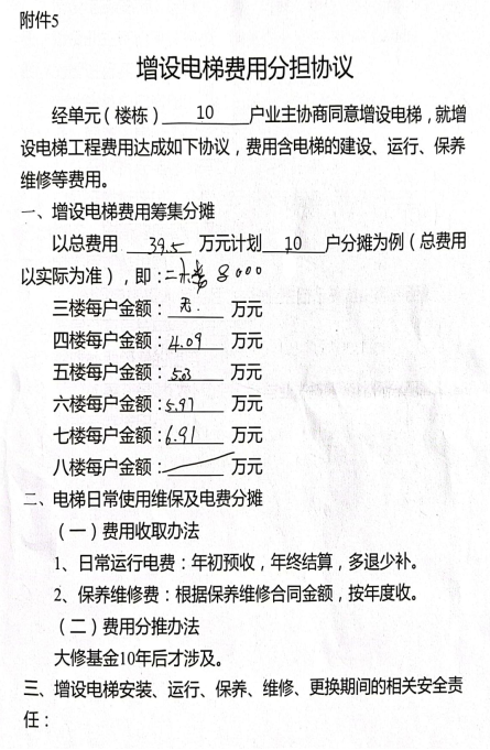 附件:1.书面申请;2.相关合格书;3.增设电梯示意图;4.业主书面同意意见;5.费用分担协议。