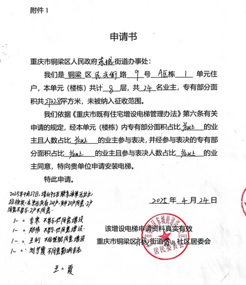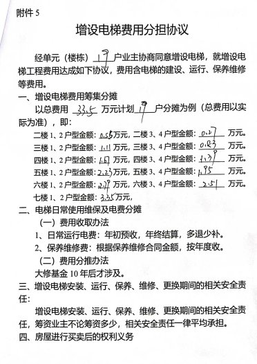 附件:1.书面申请;2.相关合格书;3.增设电梯示意图;4.业主书面同意意见。5.费用分担协议。