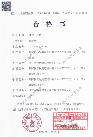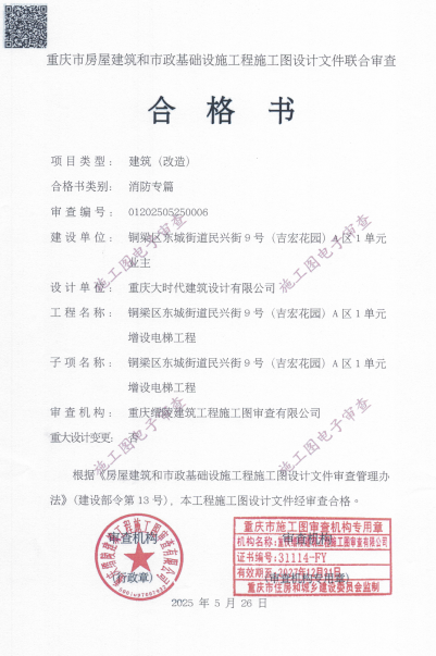 该增设电梯项目名称为铜梁区东城街道民兴街*号(吉宏花园)*区*单元增设电梯项目,建设单位为重庆渝港电梯有限公司,设计单位为重庆大时代建筑设计有限公司,建设地点位于铜梁区东城街道民兴街*号(吉宏花园)*区*单元(方案详见增设电梯示意图),属重庆市铜梁区东城街道塔山社区。