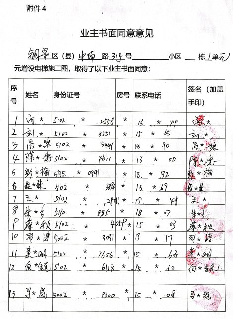 三、异议处理。1.公示期间,因增设电梯受到影响的利害关系人有反对意见的,业主可自行协商;业主协商不成的,可在2025年7月28日前(公示期满之日起5个工作日内)向社区居委会、街道办事处提出书面反对意见、调解申请,并将书面意见、房产证(或购房合同)复印件等证明涉及其利害关系的材料邮寄或直接提交至社区居委会、街道办事处,注明身份(单位-名称、社会信用代码及法定代表人身份证明 、个人姓名及身份证复印件)、联系电话和邮寄地址。逾期未提出的,视为同意申请事宜或自动放弃权利。2.对公示异议的,社区居委会、街道办事处将依据相关规定履行调解程序。