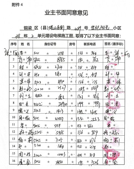 附件:1.书面申请、2.相关合格书、3.增设电梯示意图、4.业主书面同意意见、5.费用分担协议。