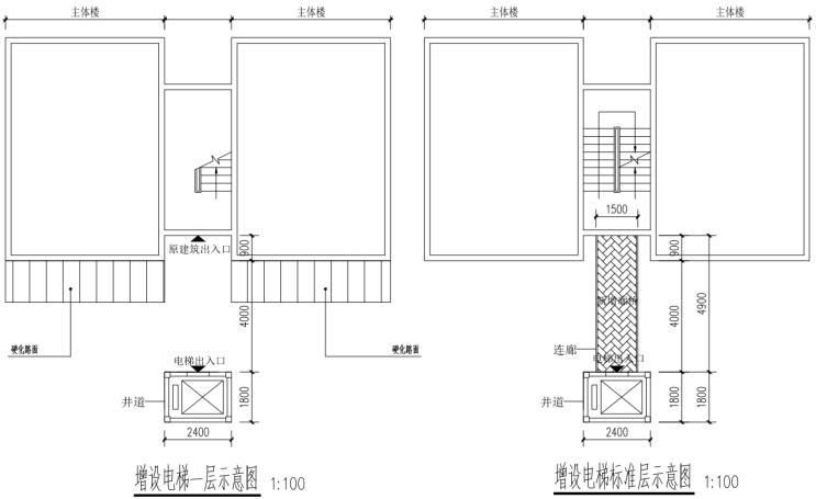 增设电梯示意图: