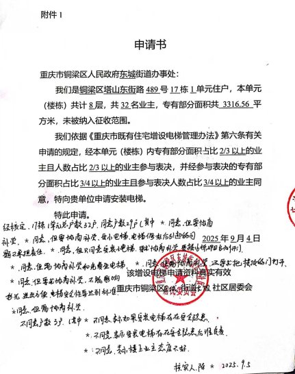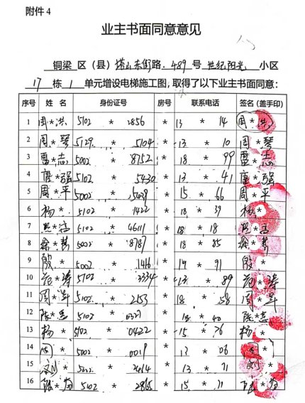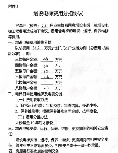 附件:1.书面申请、2.相关合格书、3.增设电梯示意图、4.业主书面同意意见、5.费用分担协议。