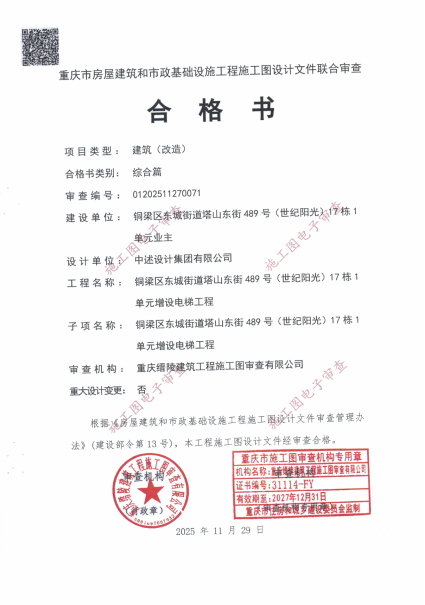 二、公示内容:根据《重庆市既有住宅增设电梯管理办法》规定,现将书面申请、增设电梯示意图等内容向相关业主和利害关系人进行公示,公开征询意见。公示期为7日,2025年12月18日——2025年12月31日。同时在铜梁区政府网同步进行公示,公示链接:https://www.cqstl.gov.cn/。