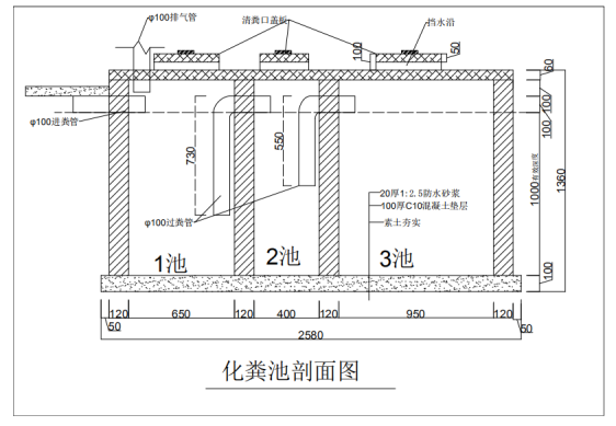 7.防雨处理:化粪池的上沿要高出地面10cm,防止雨水流入。