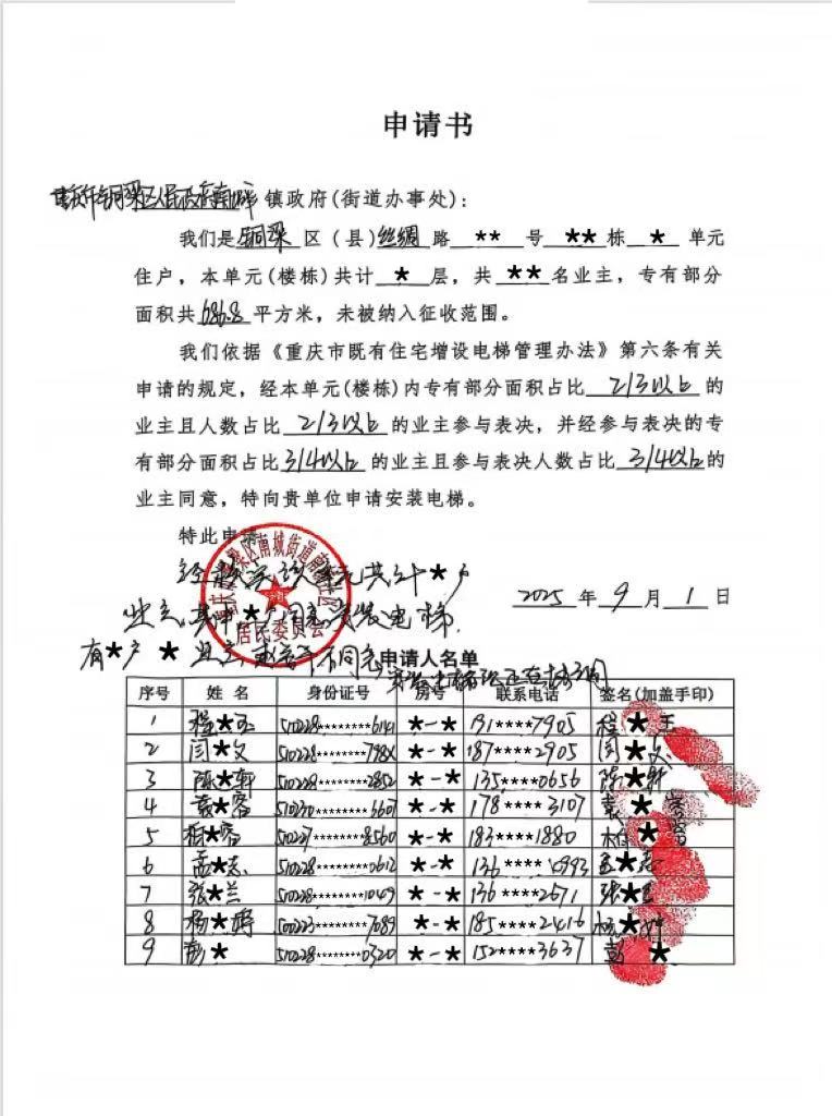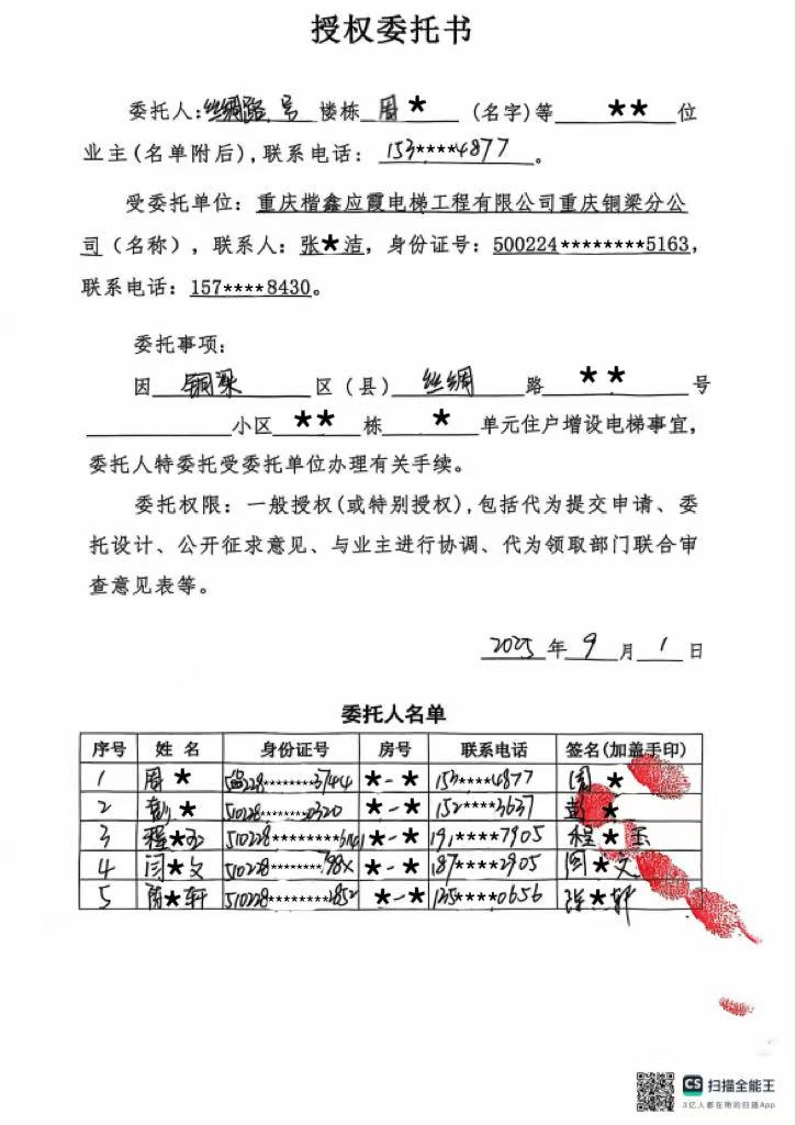 附件:1.书面申请;2.授权委托书;3.增设电梯示意图;4.业主书面同意意见;5.增设电梯费用分摊协议。