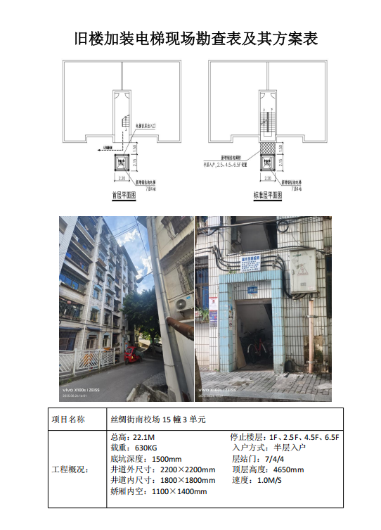 该项目名称为铜梁南城街道丝绸街32号(南较场)*栋*单元增设电梯项目,建设单位为重庆楷鑫应霞电梯工程有限公司重庆铜梁分公司,设计单位为中贝天丰设计有限公司,建设地点位于铜梁区南城街道丝绸街32号(南较场)*栋*单元(方案详见增设电梯示意图),属于重庆市铜梁区南城街道南城社区。