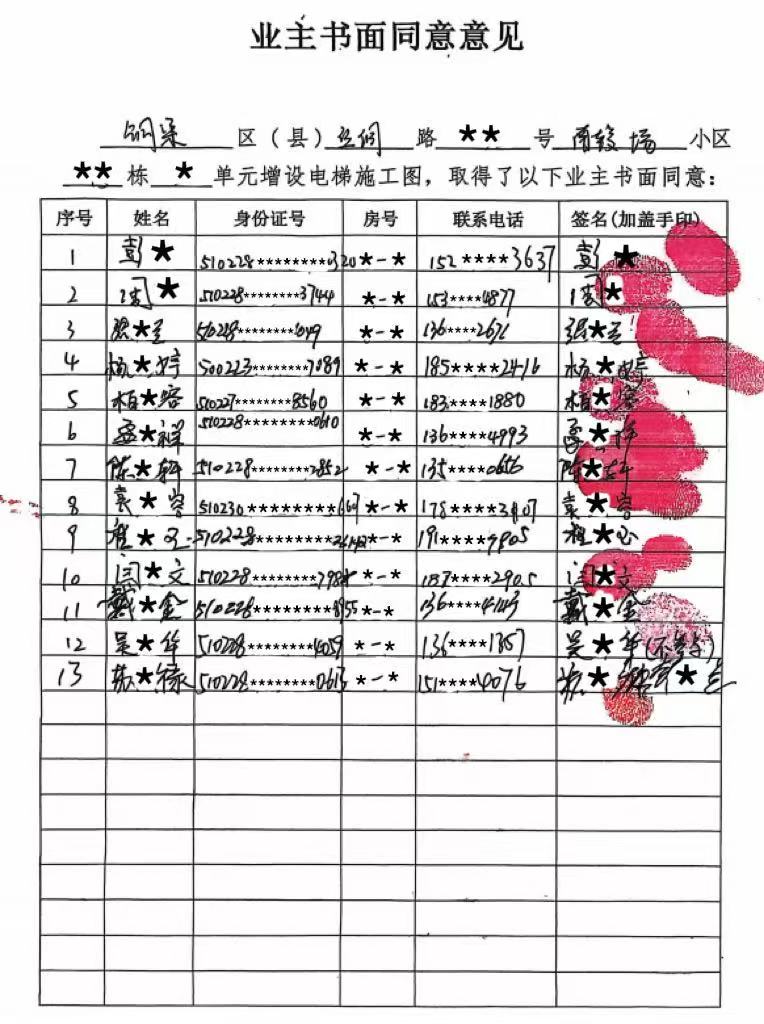 近日,铜梁区南城街道丝绸街32号(南较场)*栋*单元周*等10位业主向铜梁区南城街道办事处提出申请增设电梯,现将铜梁区南城街道丝绸街32号(南较场)*栋*单元增设电梯项目相关情况公示如下: